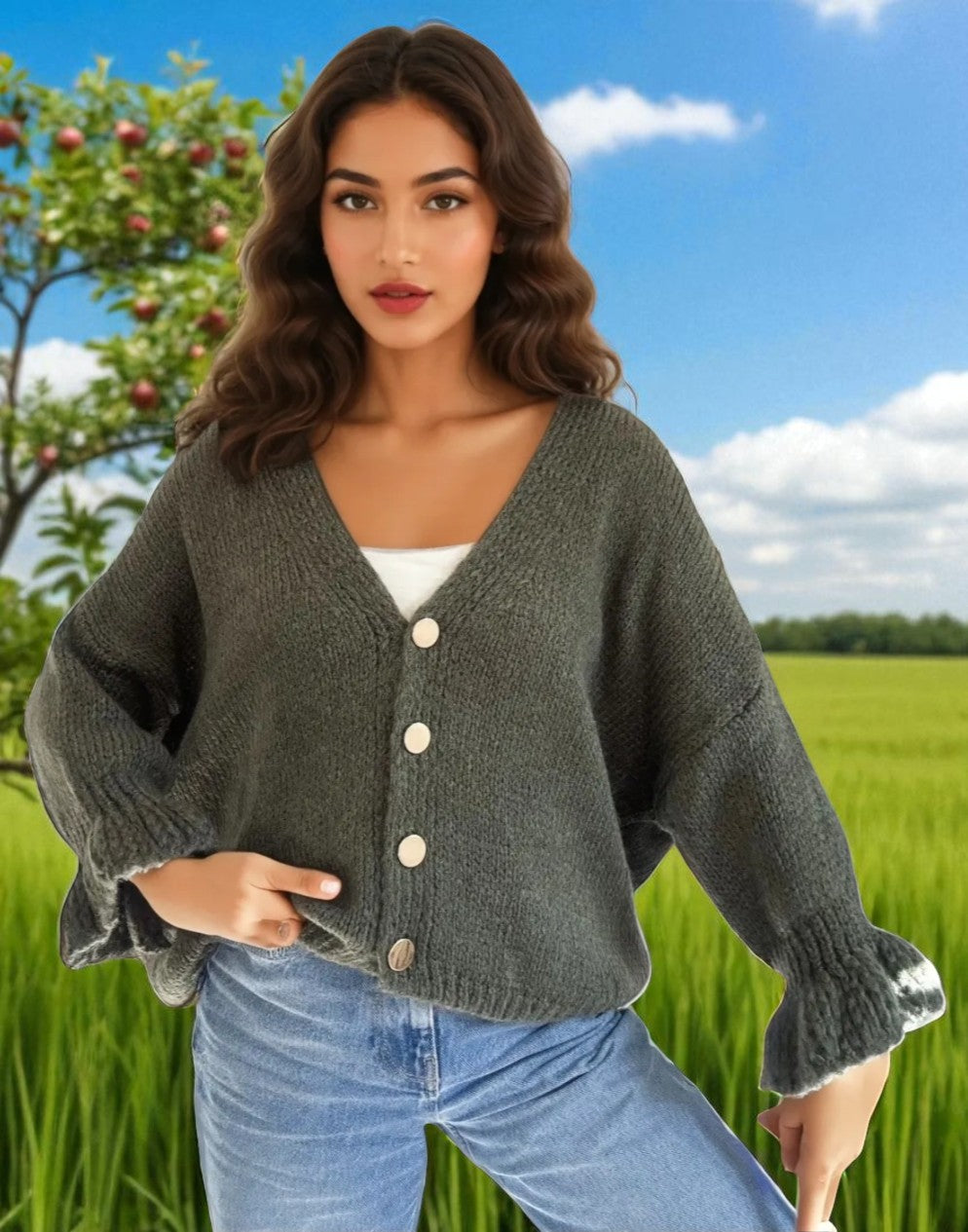 ARTICLE: Cardigan boutonne en maille , chic et elegant avec ses manches bouffante. Longueur 60cm,tour de poitrine 120cm. TOP qualite